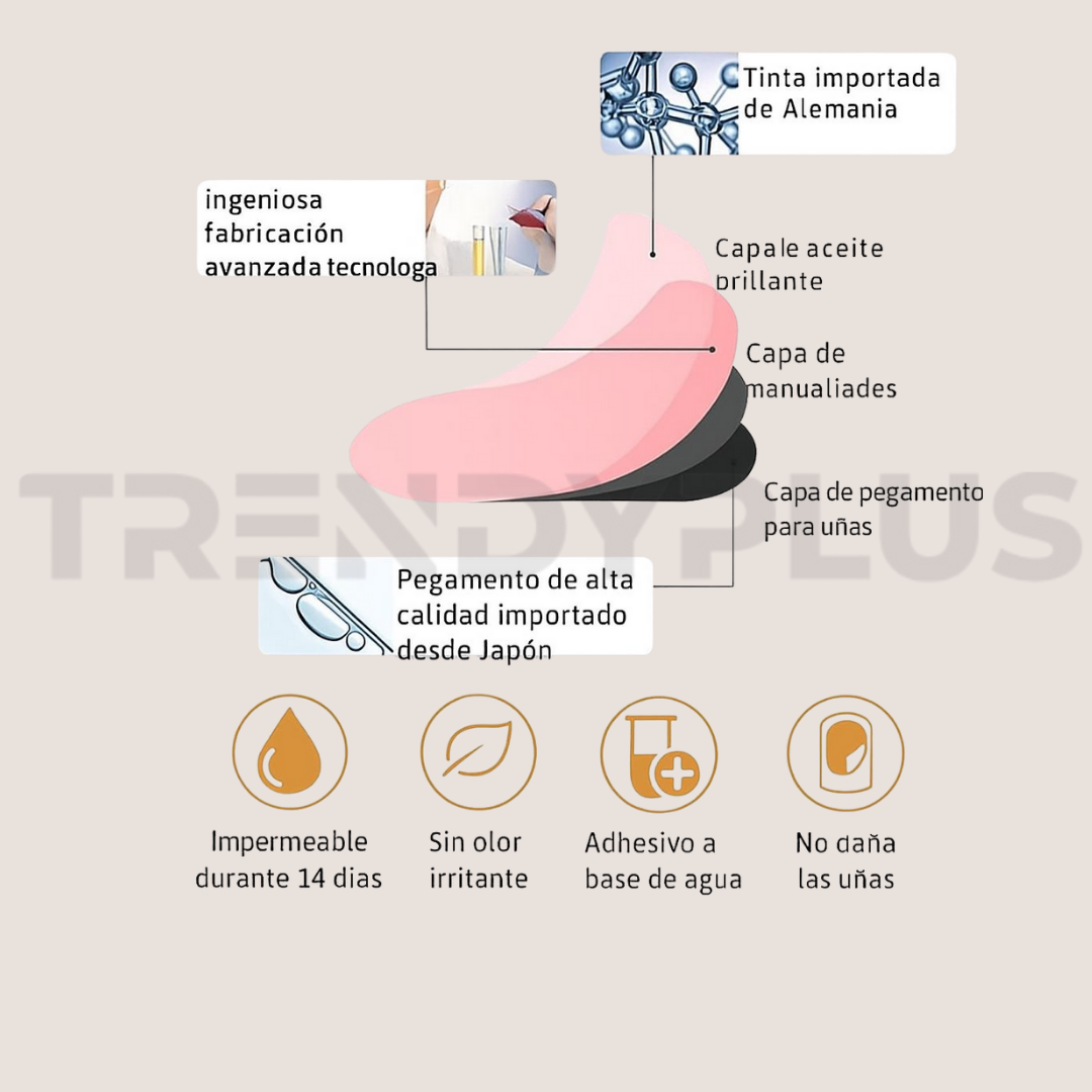 💅🏼 Adhesivo a base de agua ,menos agresivo para la uña natural, más fácil de retirar.