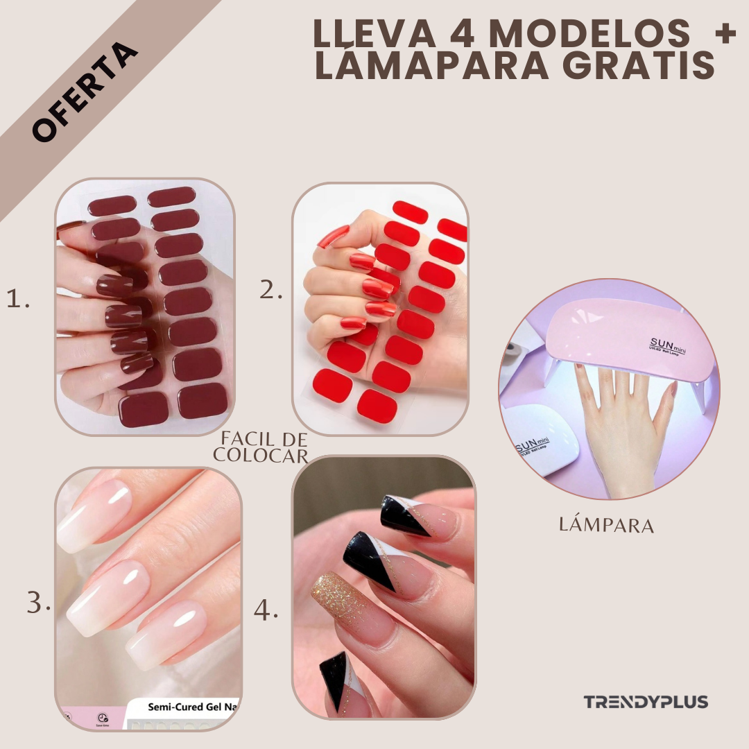 💅🏼 El combo incluye 4 estilos diferentes y un la lámpara UV completamente gratis